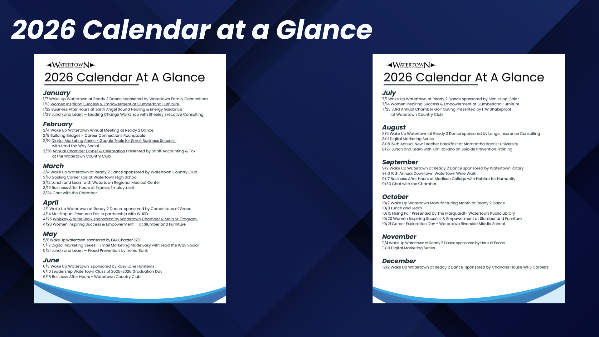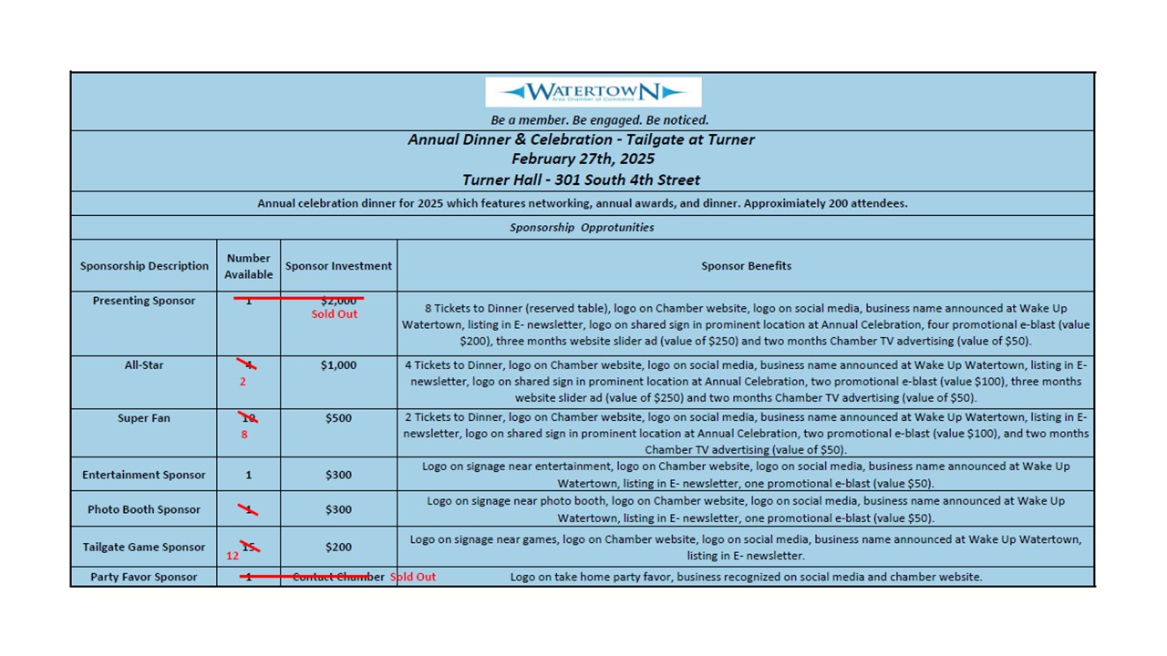 Launched in January 2011, Wake Up Watertown has quickly become an indispensable monthly networking event of the Chamber. This fast-paced program is packed full of relevant information; in addition to both informal and formal networking, guests are treated to a monthly sponsor and guest speaker, new member introductions, chamber happenings, expert tips, and community events.