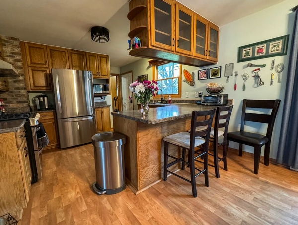 Guests have access to the entire house, except for a few locked closets. The location is just a stone’s throw away from the Jefferson County Snowmobile trails, and in the summer, visitors can launch their boats at the nearby Watertown Boat Club. A pickleball court has also been added to the driveway, complete with paddles and balls for four.