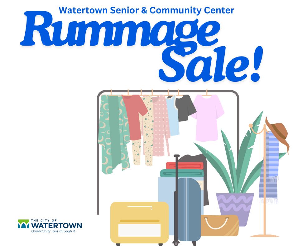 Watertown Senior & Community Center Annual Rummage Sale.Thursday, Sept. 5 - 8am - 4:30pmFriday, Sept. 6 - 8am - 4:30pmSaturday, Sept. 7 - 8am - 12 noon