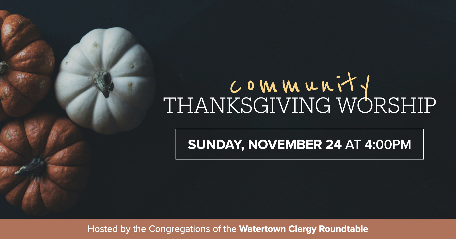 Hosted by the congregations of the Watertown Clergy Roundtable, everyone is invited to participate in this ecumenical Thanksgiving tradition!