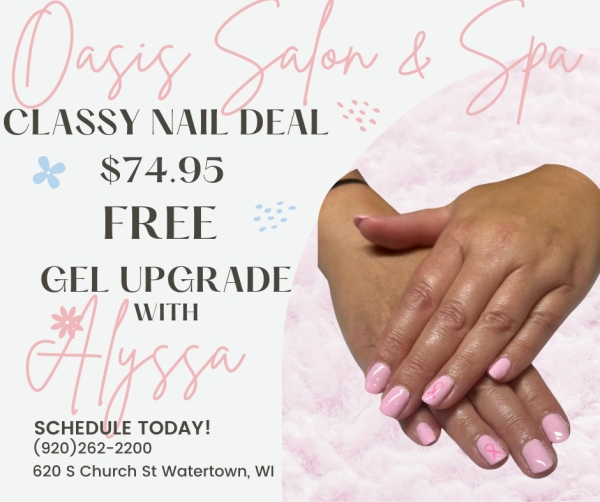 Oasis Salon & Spa, celebrating over 31 years in business, is a full-service salon and spa dedicated to exceptional beauty and wellness services. They offer a wide range of treatments, including hair styling, coloring, nail services, skincare, massage, and more, all designed to help clients look and feel their best. With a team of talented professionals, a welcoming environment, and a commitment to client satisfaction, Oasis aims to make every visit a relaxing and refreshing experience.
