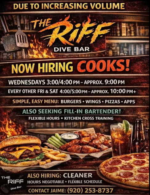 Due to increasing volume, the Riff Raff is looking for a few great people to join our crew at The Riff Dive Bar in Watertown!